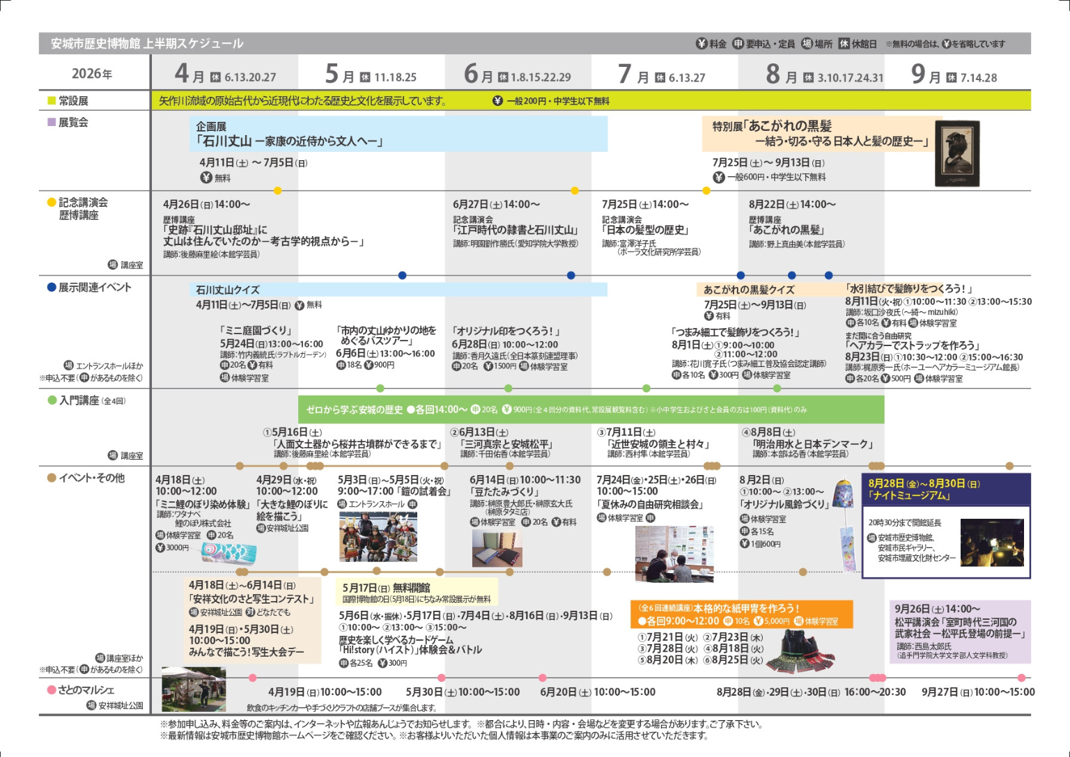 安祥文化のさと 展覧会・講座・イベント一覧