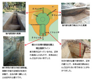 碧海台地の端に位置する古墳時代前期後半の前方後円墳です。桜井古墳群の中では、二子古墳と並んで最も古い古墳の1つです。墳丘の後円部が前方部よりも極端に高く大きいのが特徴です。範囲確認調査により、全長約66mで、後円部の北~西側には幅約10mの堀があること、前方部はほとんど開かない柄鏡型の前方後円墳であること、葺き石は伴わないこと、前方部の東側は急激に落ち込んで低地になっていることなどが判明しました。平成28年度の調査では、壺形埴輪とみられる埴輪の小片が出土しました。古墳の東側約250mの沖積地には、同時期の集落遺跡である姫下遺跡が立地しており、多量の近畿地方の形をした土器が出土しました。姫小川古墳との関連が注目されます。